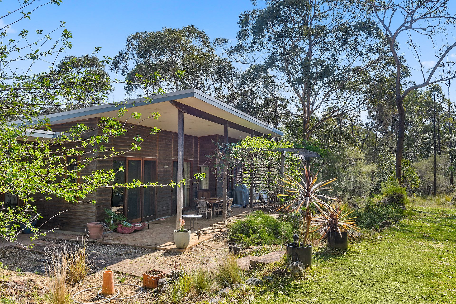 Welcome to this charming three-bedroom, two-bathroom mud brick, cedar and tin home located in stunning Tapitallee's natural beauty. This property is situated on a sprawling 2115m2 bush block, providing you with space and privacy to enjoy the peaceful serenity of the Australian bush. Whether you're a nature lover or an adventure seeker, this location is sure to delight you with its abundant wildlife, stunning vistas, and tranquil atmosphere. As you step inside the house, you will be greeted by a warm, inviting interior that exudes comfort and cosiness. The house features three well-appointed bedrooms, providing space for your family and guests to relax and unwind. One wing of the property features a separate games room, study and art studio. The house boasts a free-flowing living area that seamlessly flows into the dining and kitchen areas. From the main living area an impressive outdoor covered entertaining area is accessible via oversized cedar doors and windows which filter in beautiful natural light. The property has 2 cosy wood fire places, gas bayonet points, 6kw solar panels, instant gas hot water, wireless NBN, extremely well insulated throughout with concrete flooring.